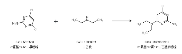 1.通过2-氨基-4,6-二氯嘧啶和二乙胺合成2-氨基-6-氯-4-二乙基胺嘧啶