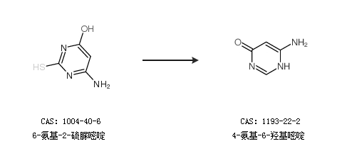1.通过6-氨基-2-硫脲嘧啶合成4-氨基-6-羟基嘧啶