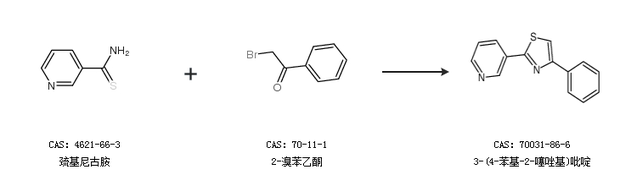 2.通过巯基尼古胺和2-溴苯乙酮合成3-(4-苯基-2-噻唑基)吡啶