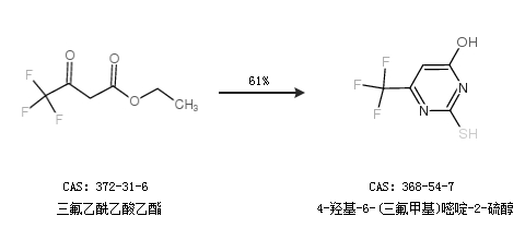 1.通过三氟乙酰乙酸乙酯合成4-羟基-6-(三氟甲基)嘧啶-2-硫醇,收率约61%;