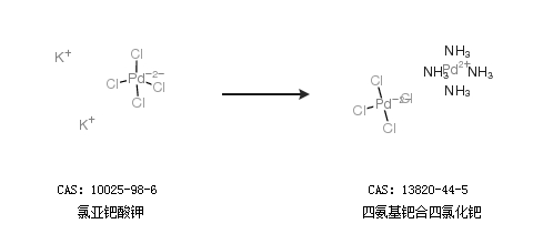分子式:[Pd(NH3)4][PdCl4] 熔点:192° dec.