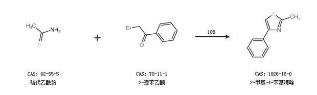 1.通过硫代乙酰胺和2-溴苯乙酮合成2-甲基-4-苯基噻唑,收率约10%;