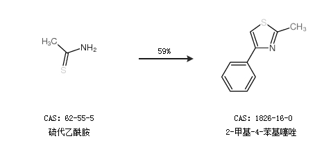 2.通过硫代乙酰胺合成2-甲基-4-苯基噻唑,收率约59%;