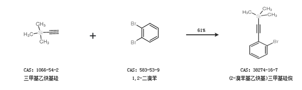 2.通过三甲基乙炔基硅和1,2-二溴苯合成(2-溴苯基乙炔基)三甲基硅烷,收率约61%;