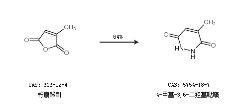 1.通过柠康酸酐合成4-甲基-3,6-二羟基哒嗪,收率约64%;
