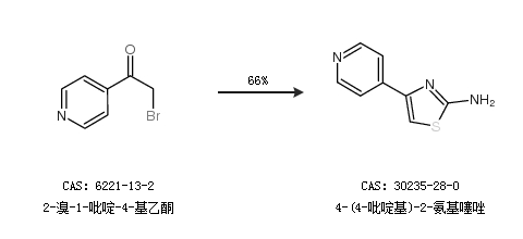 1.通过2-溴-1-吡啶-4-基乙酮合成4-(4-吡啶基)-2-氨基噻唑,收率约66%;