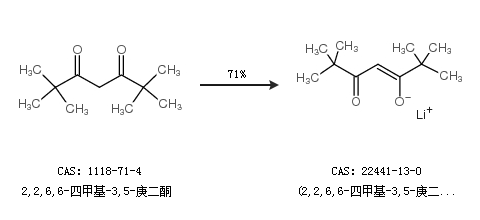 1.通过2,2,6,6-四甲基-3,5-庚二酮合成(2,2,6,6-四甲基-3,5-庚二酮)锂,收率约71%;