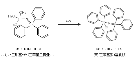 2.通过1,1,1-三甲基-N-(三苯基正膦亚基)硅烷胺合成双(三苯基膦)氯化铵,收率约49%;