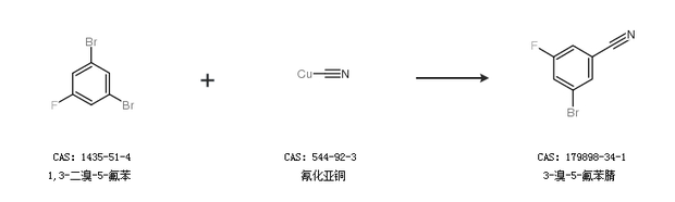 1.通过1,3-二溴-5-氟苯和氰化亚铜合成3-溴-5-氟苯腈