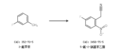 2.通过3-氟甲苯合成5-氟-2-硝基苯乙腈