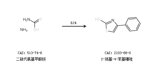 2.通过二硫代氨基甲酸铵合成2-巯基-4-苯基噻唑,收率约61%;
