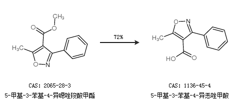 1.通过5-甲基-3-苯基-4-异噁唑羧酸甲酯合成5-甲基-3-苯基-4-异恶唑甲酸,收率约72%;