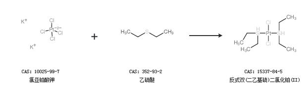 中文名:反式双(二乙基硫)二氯化铂(II)