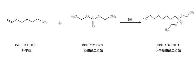 1.通过1-辛烯和亚磷酸二乙酯合成1-辛基膦酸二乙酯,收率约99%;