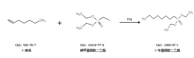 2.通过1-庚烯和碘甲基膦酸二乙酯合成1-辛基膦酸二乙酯,收率约77%;