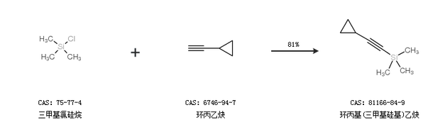 1.通过三甲基氯硅烷和环丙乙炔合成环丙基(三甲基硅基)乙炔,收率约81%;