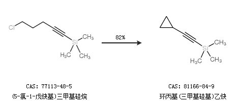2.通过(5-氯-1-戊炔基)三甲基硅烷合成环丙基(三甲基硅基)乙炔,收率约82%;