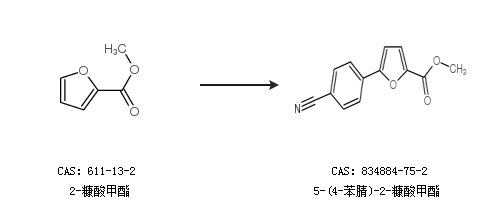 1.通过2-糠酸甲酯合成5-(4-苯腈)-2-糠酸甲酯