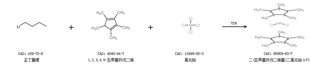 2.通过正丁基锂、1,2,3,4,5-五甲基环戊二烯和氯化铪合成二(五甲基环戊二烯基)二氯化铪(iV),收率约72%;