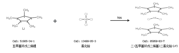 1.通过五甲基环戊二烯锂和氯化铪合成二(五甲基环戊二烯基)二氯化铪(iV),收率约76%;