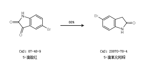 2.通过5-溴靛红合成5-溴氧化吲哚,收率约88%;