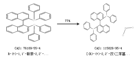 1.通过R-(+)-1,1''-联萘-2,2''-双二苯膦合成[(R)-(+)-2,2''-双(二苯基膦)-1,1''-联萘]二氯化钯,收率约77%;