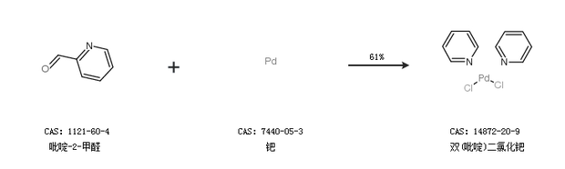 1.通过吡啶-2-甲醛和钯合成双(吡啶)二氯化钯,收率约61%;