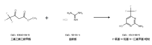 2.通过三氟乙酰乙酸甲酯和盐酸胍合成2-氨基-4-羟基-6-(三氟甲基)嘧啶