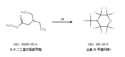 2.通过N,N-二乙基甘氨酸甲酯合成全氟(N-甲基吗啉),收率约2%;