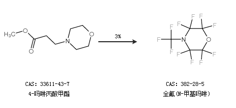 1.通过4-吗啉丙酸甲酯合成全氟(N-甲基吗啉),收率约3%;