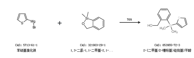2.通过苯硫基溴化镁和1,3-二氢-1,1-二甲基-2,1-苯并氧硅杂环戊二烯合成2-{二甲基(2-噻吩基)硅烷基}苄醇,收率约76%;
