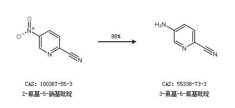 1.通过2-氰基-5-硝基吡啶合成3-氨基-6-氰基吡啶,收率约88%;
