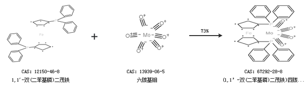 1.通过1,1''-双(二苯基膦)二茂铁和六羰基钼合成(1,1’-双(二苯基磷)二茂铁)四羰基钼,收率约73%;