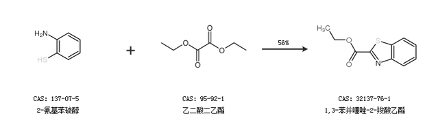2.通过2-氨基苯硫醇和乙二酸二乙酯合成1,3-苯并噻唑-2-羧酸乙酯,收率约56%;