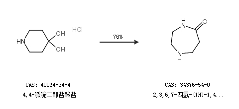 2.通过4,4-哌啶二醇盐酸盐合成2,3,6,7-四氢-(1H)-1,4-二氮杂卓-5(4H)-酮,收率约76%;