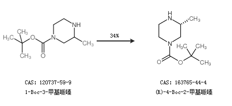 1.通过1-Boc-3-甲基哌嗪合成(R)-4-Boc-2-甲基哌嗪,收率约34%;