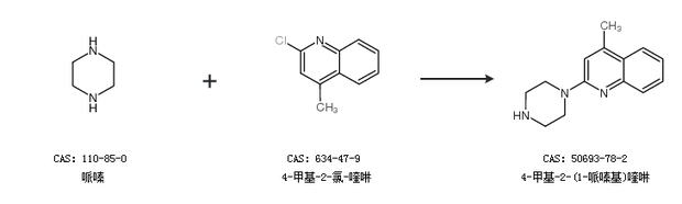 1.通过哌嗪和4-甲基-2-氯-喹啉合成4-甲基-2-(1-哌嗪基)喹啉
