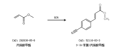 1.通过丙烯酸甲酯合成3-(4-苯腈)丙烯酸甲酯,收率约92%;