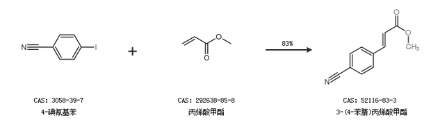 2.通过4-碘氰基苯和丙烯酸甲酯合成3-(4-苯腈)丙烯酸甲酯,收率约83%;