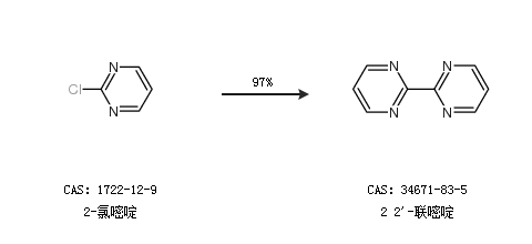 1.通过2-氯嘧啶合成2 2''-联嘧啶,收率约97%;