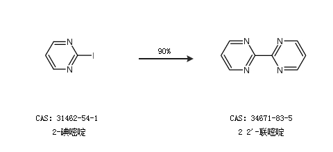 2.通过2-碘嘧啶合成2 2''-联嘧啶,收率约90%;