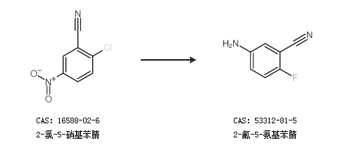 1.通过2-氯-5-硝基苯腈合成2-氟-5-氨基苯腈