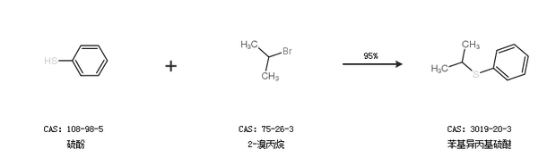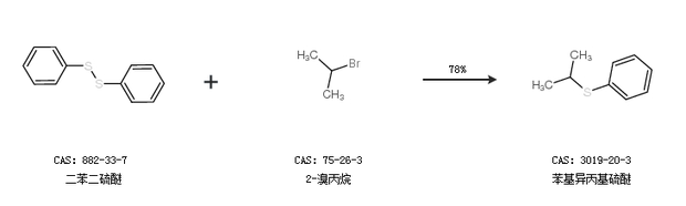 1.通过二苯二硫醚和2-溴丙烷合成苯基异丙基硫醚,收率约78%;
