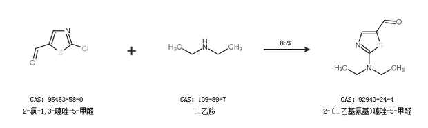 1.通过2-氯-1,3-噻唑-5-甲醛和二乙胺合成2-(二乙基氨基)噻唑-5-甲醛,收率约85%;