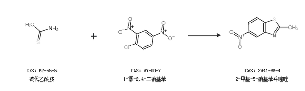 1.通过硫代乙酰胺和1-氯-2,4-二硝基苯合成2-甲基-5-硝基苯并噻唑