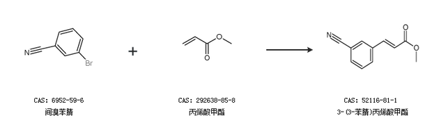 2.通过间溴苯腈和丙烯酸甲酯合成3-(3-苯腈)丙烯酸甲酯