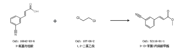 1.通过3-氰基肉桂酸和1,2-二氯乙烷合成3-(3-苯腈)丙烯酸甲酯