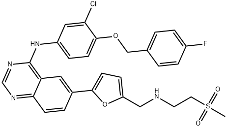 中文名:N-(3-氯-4-((4-氟苄基)氧基)苯基)-6-(5-(((((2-(甲磺酰基)乙基)氨基)甲基)呋喃-2-基)喹唑啉-4-胺 双(4-甲基苯磺酸盐)
