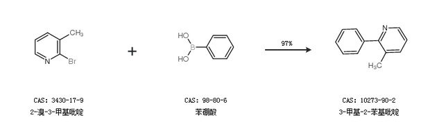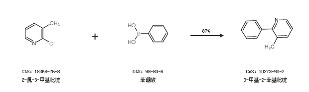 2.通过2-氯-3-甲基吡啶和苯硼酸合成3-甲基-2-苯基吡啶,收率约87%;