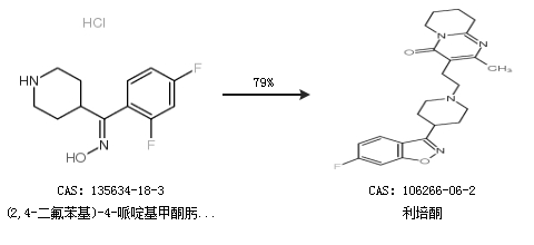 有5HT2受体和D2受体的拮抗作用.用于急慢性精神分裂症. 本品是一种苯并异唑的哌啶)嘧啶衍生物,为抗精神病药物.利培酮通过拮抗多巴胺D2和5-HT2受体而治疗精神分裂症.它对D2、5-HT